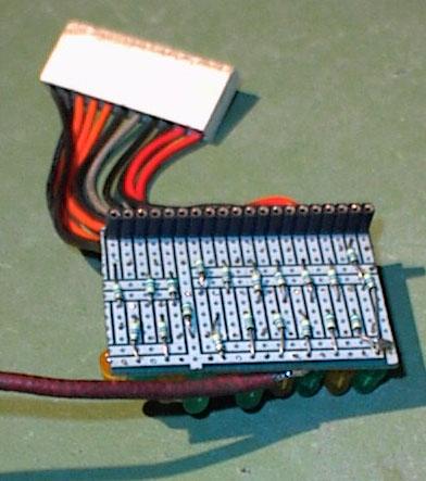 Be careful when you hook up the voltages to your MPU board. If you short +12 volts to +5 volts (for example), you will probably destroy all the chips on the MPU board! Also be careful when you hook up +12 volts. It is VERY easy to short test points. This may damage the MPU board too! (Unlikely, but let's not risk it). So be careful, and double check your connections before you turn the power supply on. In any case, all you need to do is connect the power supply to a wall plug (110 vac), and put aligator clips on the GND, +5 vdc and +12 vdc. That's all you need to power up a Bally 6803 CPU board on your workbench. On a computer power supply, the best way to do this is to use one of the plugs that connected to the computer's hard drive, floppy drive, or CD ROM drive. There are usually at least three of these 4 pin plugs on each computer power supply. These plugs have two black wires, and one red and one yellow wire. The two black wires are ground, the red wire is +5 vdc, and the yellow wire is +12 vdc. I used some crimp-on round male connector pins and jammed them into the plug. Then I connected these to aligator clips, which ultimately go to your MPU board.