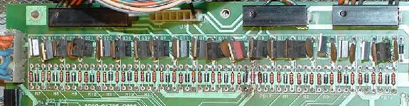 Other Notes: First the LEDs which blink during the basis test will blink all together. Then LEDs that blink during the driver test will blink one after another, giving a "running light" effect. During the test that the LEDs should light, it MUST blink; a steady and solid "on" means the driver transistor is bad. All basic commands come from U14. When you have a LED that will not blink, check first the outputs of U14 pin 1-16. If pulsing, you have a fault at the driver chip (CA3801) or the driver transistor. Follow the command using schematic sheet five.