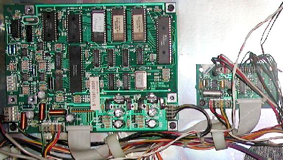 6803 Games with two 9 segment, 14-digit alphanumeric displays and Turbo Cheap Squeak sound board. These score displays were "low res" with only nine segments. "Registers" no longer used for adjustments, keypad used.