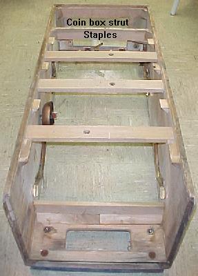 If the coin door or legs are excessively rusty and Lightning didn't get all the rust off, you can also sand off the rust 340 grit wet/dry sandpaper (using it "wet" with water). Then follow this by buffing the parts on a buffing wheel. 2e. The Cabinet: Put the Legs On (stripped threads)
