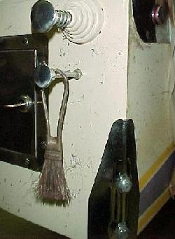 Repainting a cabinet is an ugly, big job. But if someone already stripped all the original paint off the cabinet, there isn't much choice. If there is any way to save the original finish, I always try. To me, a scratched, original cabinet is better than a mint, perfectly refinished one. Because original is original - once originality is gone, the time capsule of history is gone and there's no going back (a repainted cabinet can always be repainted again). A common thing to see is a partial repaint. Often, the front of the cabinet where the coin door is mounted is the only part repainted. This is good and bad news; many Gottlieb games don't have any stencil designs here, so repainting this area alone is pretty easy. What is the "Webbing" or "Splatter" on Cabinets all