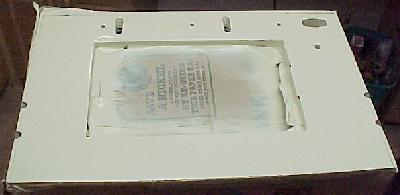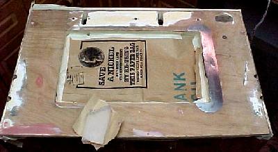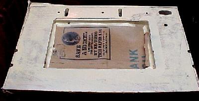 Note the defects have been filled with body filler, and block sanded smooth. All areas that could get overspray have been masked off. I put a piece of masking tape over the original finish under the coin entrance plate. This allows me to compare my new finish to the original when done.