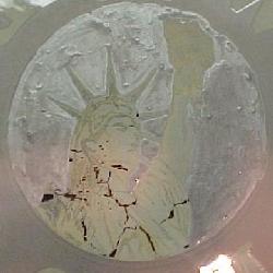 areas? Using Paint Retarder to Match Translucent Areas. Using Cellephane Mask in Translucent Areas. Making Touched-up Translucent areas Opaque. Right: After the touch up, the entire translucent area that is touched up is back painted with opaque silver paint. This allows the touched up areas to match in color and translucency (which is now not transparent!). The Liberty statue in the center of the circle is not touched up, and is left translucent.