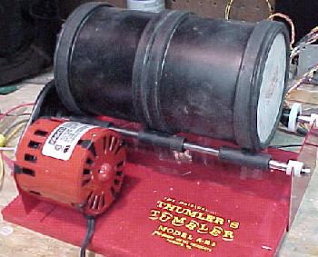 Rotation tumblers are available from any decent hobby shop. Buy a good one (around $100), not the cheap "kiddie" tumbler (about $30). The best/cheapest one I found was $90, and had a single quart sized rubber tumbler jar. For another $10, I was able to get this double tumbler with two quart sized rubber jars. For the extra $10, this was definately worth it. They also make a tumbler with a much bigger single jar, for tumbling larger objects. It's huge with a 12.5 quart basin!