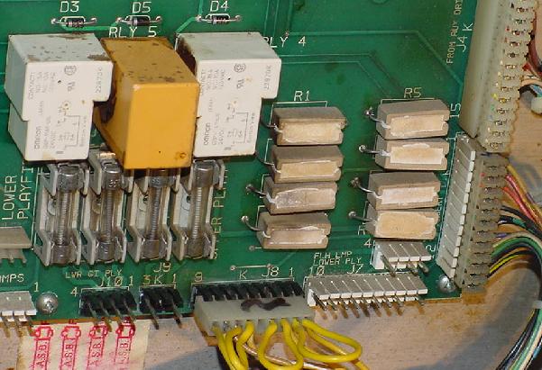 - Lamp matrix power resistors. On the CPU board, lower right corner, there