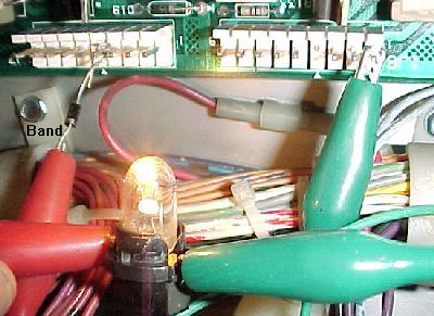 - Move the diode/alligator lead on 1J6 to the next pin. Again, the lamp