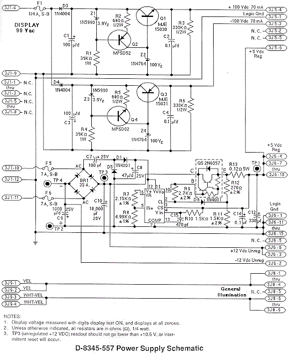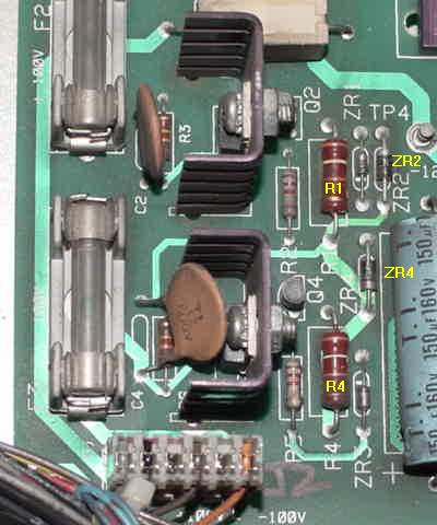 Positive 100 volt section System 11 parts to replace: Negative 100 volt section System 11 parts to replace: When installing the new parts, cut the old parts out first. Then use a solder sucker and clean out the circuit board holes. Make sure you install new resistors slightly off the board, to allow for air circulation. Solder all parts on both sides of the board if possible. If using a HV rebuild kit, install all the parts. If you're buying the parts individually yourself, it is best to replace everything listed above all at the same time (though I have been known to skip the resistors/caps if they test "good" with my DMM, but that's probably not a good idea). WARNING: if the high voltage section of the power supply has failed and is rebuilt, it can be damaged *again* by a shorted display score glass or a shorted UDN chip! The high voltage fuse(s) should protect against this, but sometimes the fuse just don't blow fast enough to save the power supply's high voltage components.