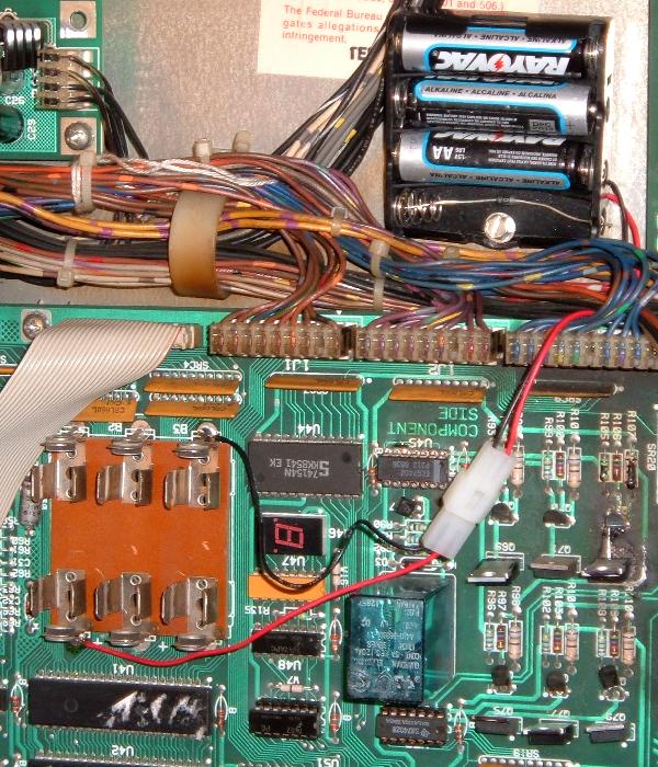 New CPU Batteries Die very Quickly. If either diode D1 or D2 is bad, it can let the batteries attempt to power all the +5 volts logic for the whole CPU board when the game is powered off. Or it can let the +5 volts from the power supply attempt to charge the batteries when the game is powered on. In either case, this will cause the batteries to die quickly. If you have batteries that are dying very quickly, replace both diodes D1 (1N5817) and D2 (1N4148) on the CPU board.