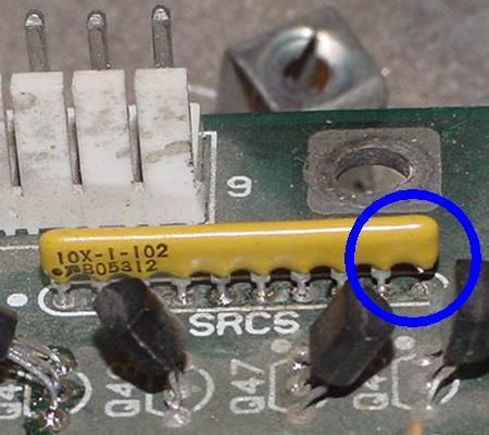 Installing a SR instead of a SRC at SRC6. Again, to repeat, if using a SR resistor only network instead of a SRC resistor/capacitor network, the last pin (pin 10) of the SR should be modified for use in the system11 CPU board. Just cut off the last pin (pin 10) on the resistor network opposite the "common" pin. Remember the common pin is the pin with the "dot", so cut off the 10th leg furthest away from the dot.