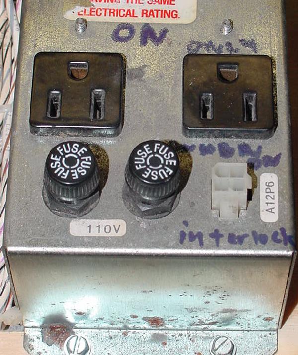 All Gottlieb System3 games have a front door interlock switch. This switch gets closed automatically when ever the coin door is closed, allowing the game to turn on. To operate the game with the coin door open requires pulling out the interlock switch lever. Also this switch connects to the power box inside the lower cabinet. If the interlock A12J6 connector is removed from the power box, the game will not turn on because the 120 volts is cut.