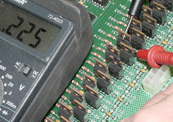 The above procedure tests the device in question from the driver board to the device. It does not test the MosFET however (how to do that is shown below). Note this testing procedure also applies to the devices driven by the Auxiliary Driver board (the small eight MosFET board used for additional game flash lamps).