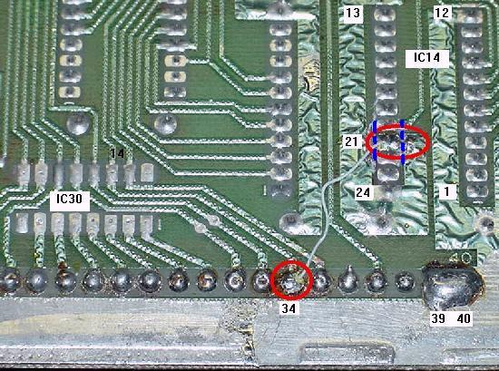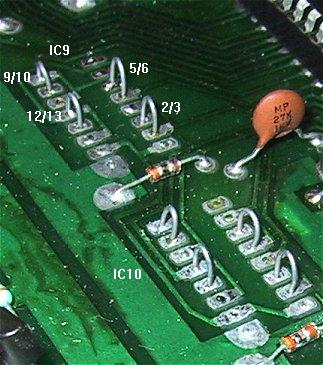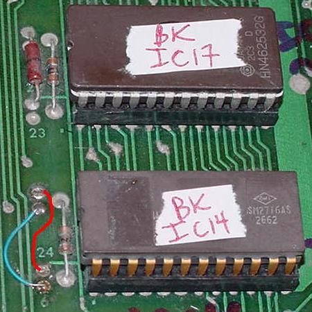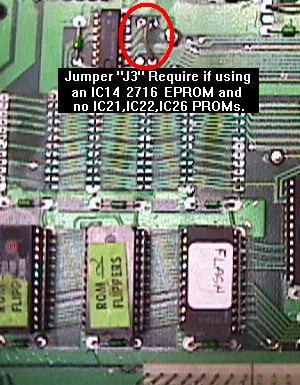 If all went well above, repeat steps 5 through 9, but with IC10. After the board is up and running, replace the 5101 RAM at location IC19. The reason this chip was removed is simple. If a mistake was made in the above procedure, it will FRY the 5101 RAM! These chips are hard to get and somewhat expensive now, so it's a good preventitive measure to remove the chip while testing this procedure. If the board won't boot, and the two LEDs are locked on, either there are other problems with the board or some mistake was made in the above installation.