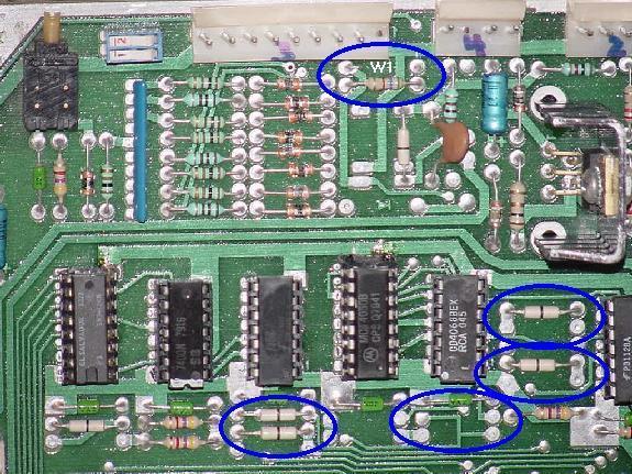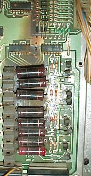 Yet another option to fix the burnt resistors is an idea documented by C.Eddy. He replaces the eight TIP42 lamp matrix transistors (Q63, Q65, Q67, Q69, Q71, Q73, Q75, Q77) with IRF9z34N mosfets. The MOS-FETs are installed oriented just like the TIP42 transistors. And the mosfets only need a tiny amount of current to drive them (compared to the TIP42 transistor), hence the large power resistors at R149-R156 never get hot. Because of this there is no need to replace the large resistors (the old burnt ones can be left installed, unless they are open). Heck if the TIP42s are replaced with Irf9z34n mosfets the power resistors R149-156 can even be replaced with jumper wires or zero ohm resistors.