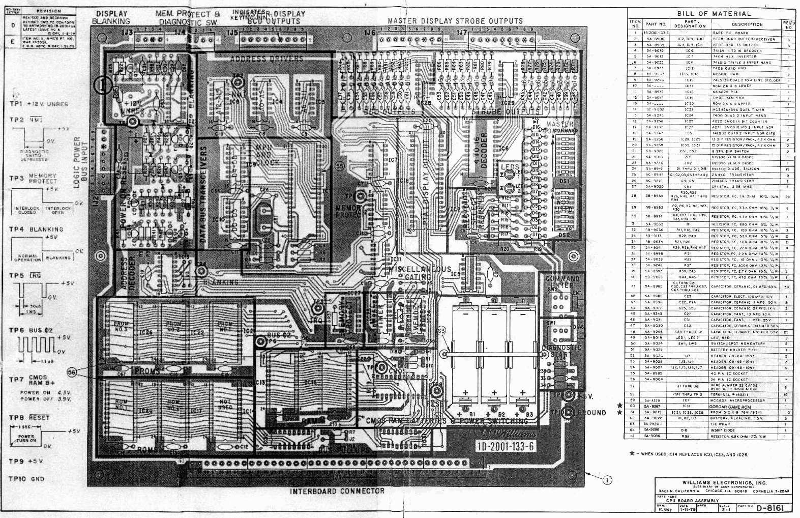 3a. When Things Don't Work: Power On, Funky Score Display Numbers (Battery/5101 RAM Problems) Dead batteries (or worse, dead corroded batteries) will cause problems getting a system4 to system7 game to power-up properly. On these games, if the batteries are dead, the game can still boot, but will come up in "audit" mode (system3 games do not have this boot-up audit mode). To get to attract mode, turn the game off and on again quickly. If done fast enough, the game should come up in attract mode. Note on System6 and System7 games, the coin door *must* be open for this to work (memory protection switch open). If the game still doesn't come up in attract mode, even with the "turn it off and on quickly" trick, the CMOS 5101 RAM chip at IC19 is probably bad. Please refer back to the Batteries and Battery Holders section for more information on this subject, including how to test the batteries, blocking diode D17, and the CMOS 5101 RAM at IC19.
